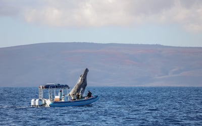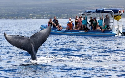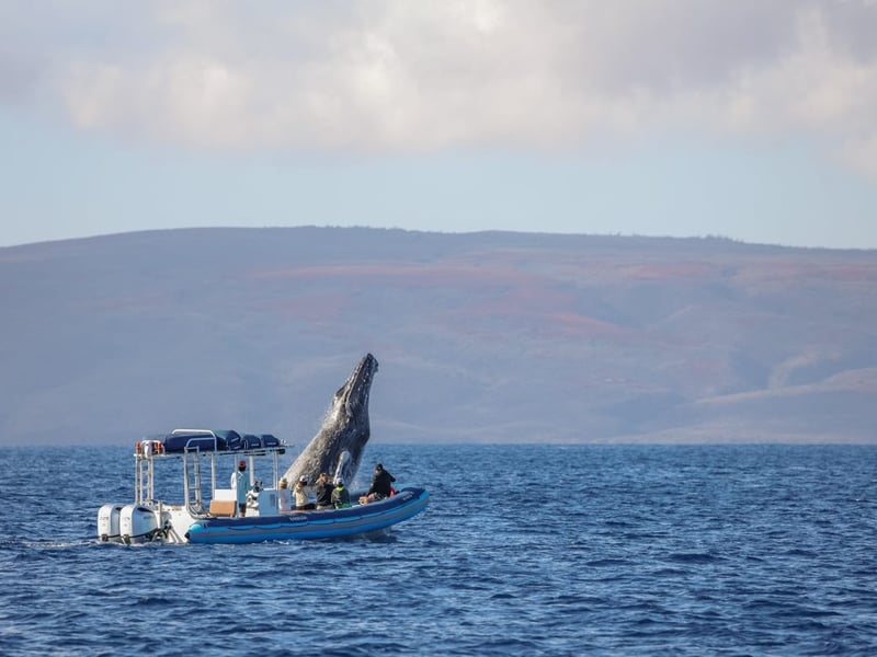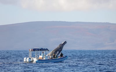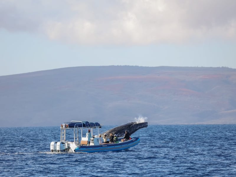Ride an adventure-style raft for a 1.5-hour whale watch departing from the Wailea/Kihei area. Listen to whale songs on a hydrophone and enjoy low-to-water views with narrated insights about whales and Maui.