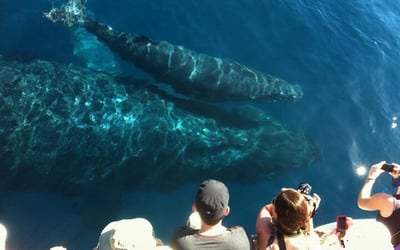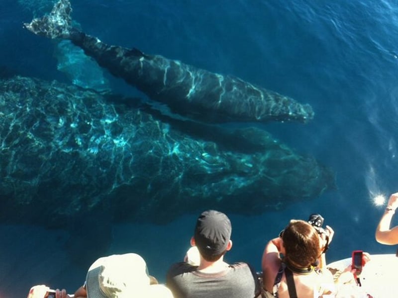 We recommend bringing reef-safe sunscreen, a hat, sunglasses, and a light jacket. Don’t forget your camera for capturing the whales!