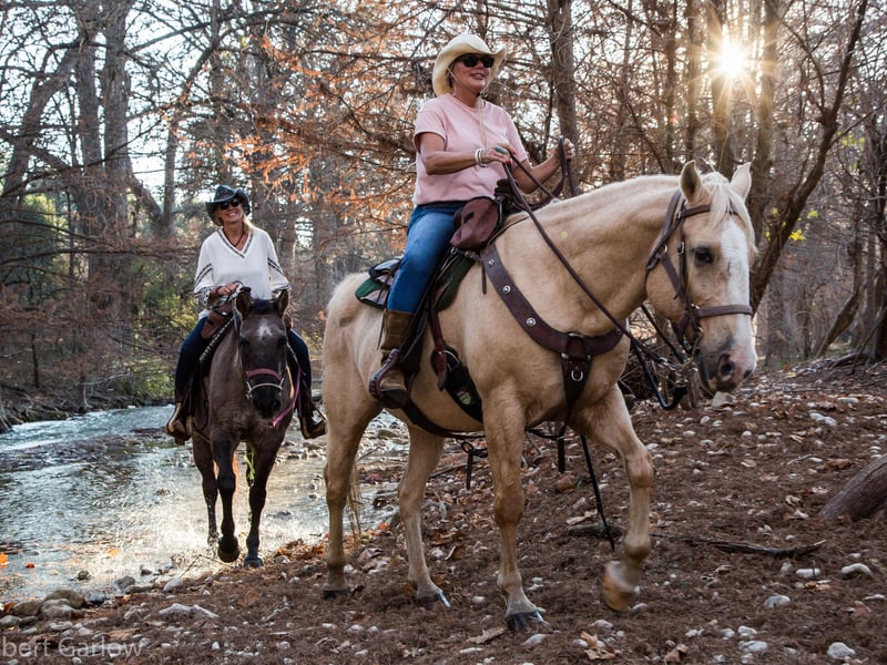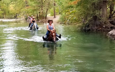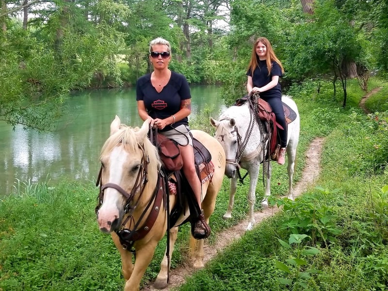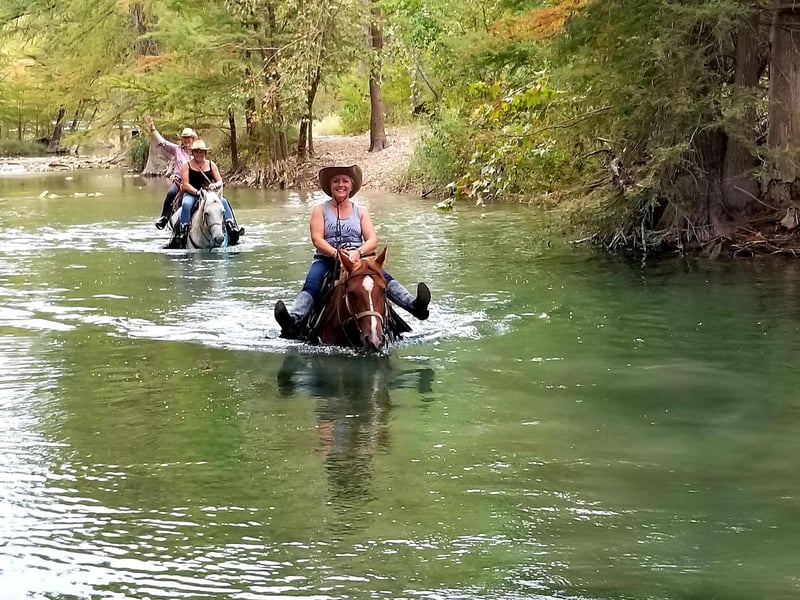 Harrieth and her team run a genuinely welcoming operation in the Texas Hill Country, and it shows in every detail. Guests consistently praise the well-cared-for horses (many are rescues), clean and charming cabins, and the warm hospitality that makes visitors feel like part of the ranch family. Tom and Tami get special mentions as excellent trail guides, leading riders through beautiful landscapes that include river crossings, scenic vistas, and glimpses of local wildlife like deer. Robin's cooking earns rave reviews, especially the chuckwagon breakfasts prepared over an open fire. The experience goes beyond just a trail ride. Visitors love the authentic ranch atmosphere, from brushing horses before rides to meeting the longhorns and other animals roaming the property. The sunset rides are particularly popular, and packages that include overnight stays with multiple rides and meals seem to create the most memorable experiences. One experienced rider wished for more opportunities to canter, but beginners consistently report feeling safe and comfortable. Whether you're coming from across Texas or flying in from Europe, this appears to be a genuine Hill Country adventure that delivers on the promise of true Texas hospitality.