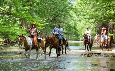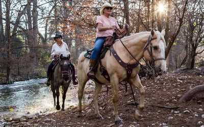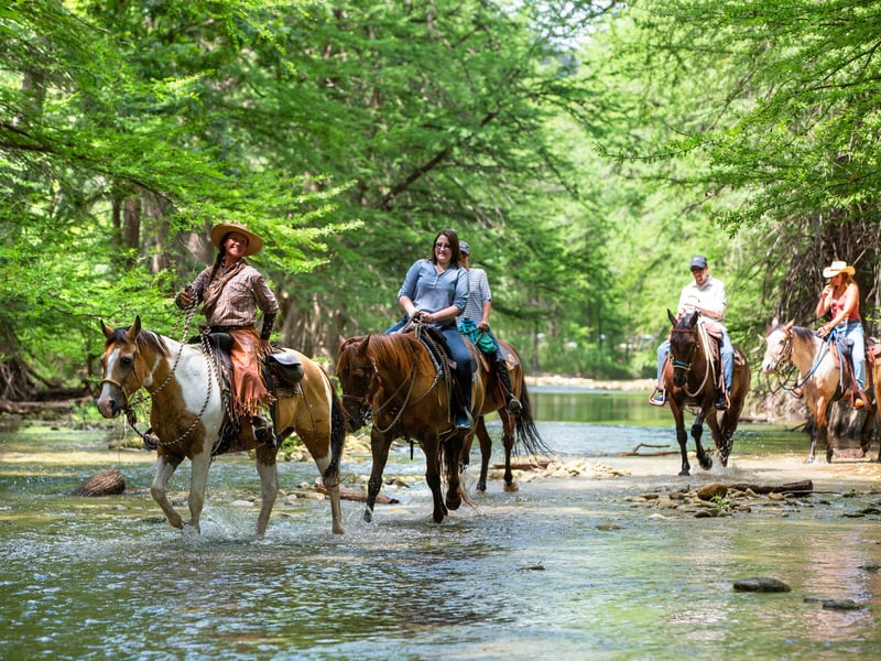 Ride gentle horses along the Medina River at Bandera City Park. Follow shaded trails under giant cypress and enjoy serene riverside views.