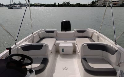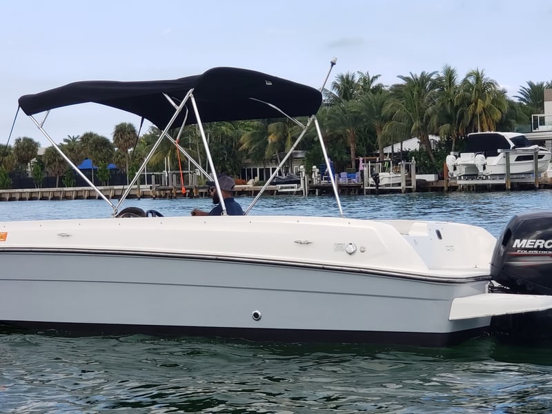Explore Miami Bay on a private Bayliner Element 21 cruise with your group. A captain must be hired separately and is paid at check-in.