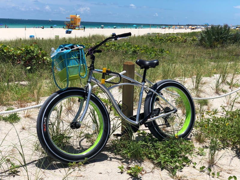 Enjoy easy sand cruising on Miami Beach fat-tire bikes, perfect for riders ages 12+
