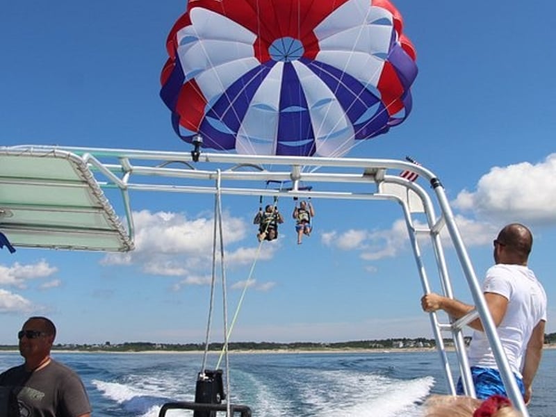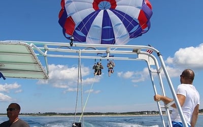 Soar above the city as you admire Miami's skyline and islands on a safe parasailing flight.