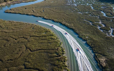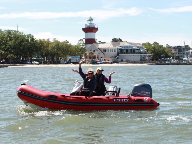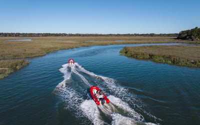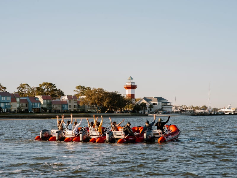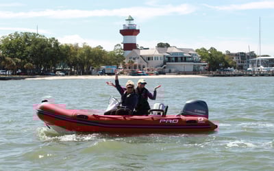 Take the helm of a nimble mini boat and follow an expert guide along 25 miles of scenic Lowcountry waterways. Feel the thrill of skimming across Broad Creek and Calibogue Sound while watching for playful Atlantic bottlenose dolphins.