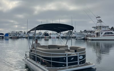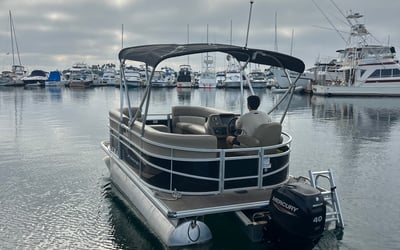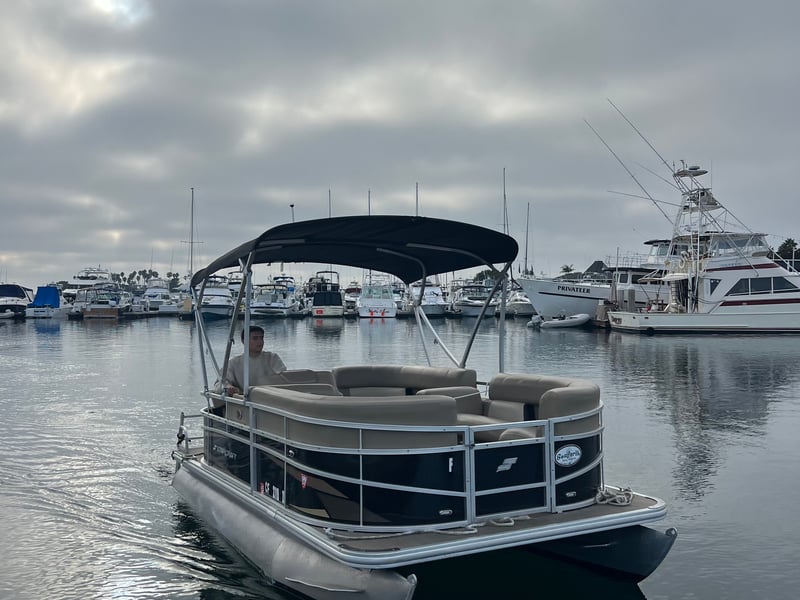Relax on Mission Bay aboard a comfy 16-foot pontoon with room for six