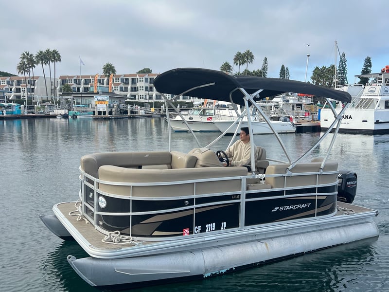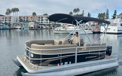 Rent a 16-foot Starcraft pontoon and cruise Mission Bay with comfort and shade. Enjoy easy handling, ample seating, and room for six.