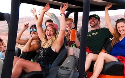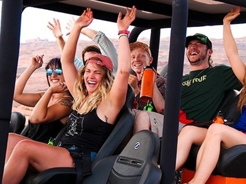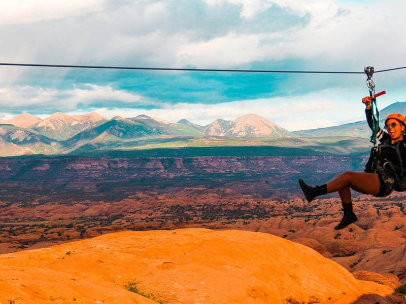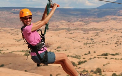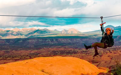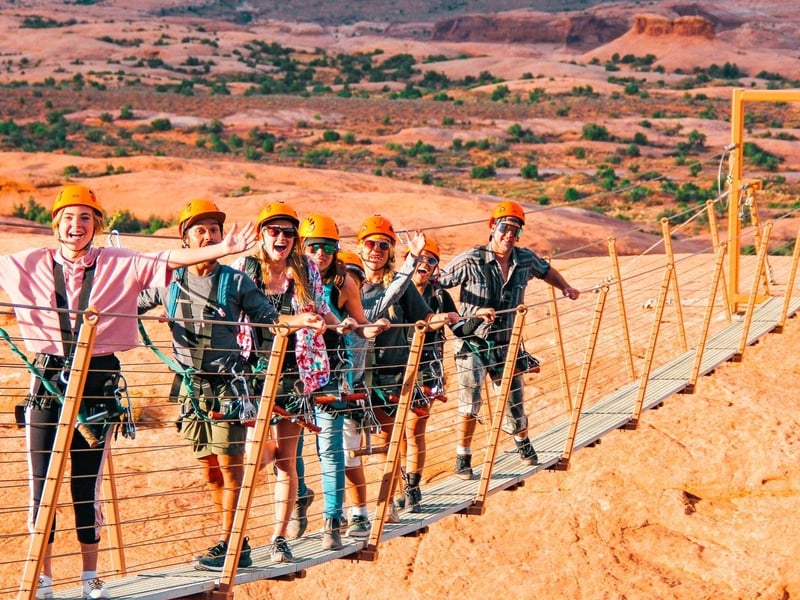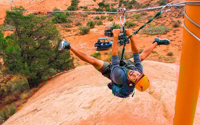 Climb 1,000 feet in a 4x4 UTV, then fly six ziplines with views of Moab’s high desert. Cross a 100-foot suspension bridge and hike along red rock fins on a guided tour.
