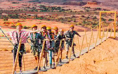 Raven's Rim delivers an exceptional zipline adventure in Moab that consistently impresses across age groups and comfort levels. The guides, particularly Luke, Leo, Bjorn, and Miranda, earn praise not just for their professionalism and safety focus, but for creating a genuinely fun atmosphere that puts nervous guests at ease. Multiple reviewers mention conquering their fear of heights thanks to the team's encouragement and confidence-inspiring approach. The experience includes a thrilling 4x4 ride to the course, six ziplines with stunning Moab views, and equipment that guests describe as top-quality. What stands out is how well this works for different groups. Families with teenagers, out-of-shape grandparents, and nervous first-timers all report having a blast. The guides balance safety with fun perfectly, keeping things lively while maintaining professional standards. One reviewer noted some communication issues with the front office, but the actual adventure experience itself consistently exceeds expectations. The scenery alone gets raved about, and several guests say it was the highlight of their entire Moab trip.