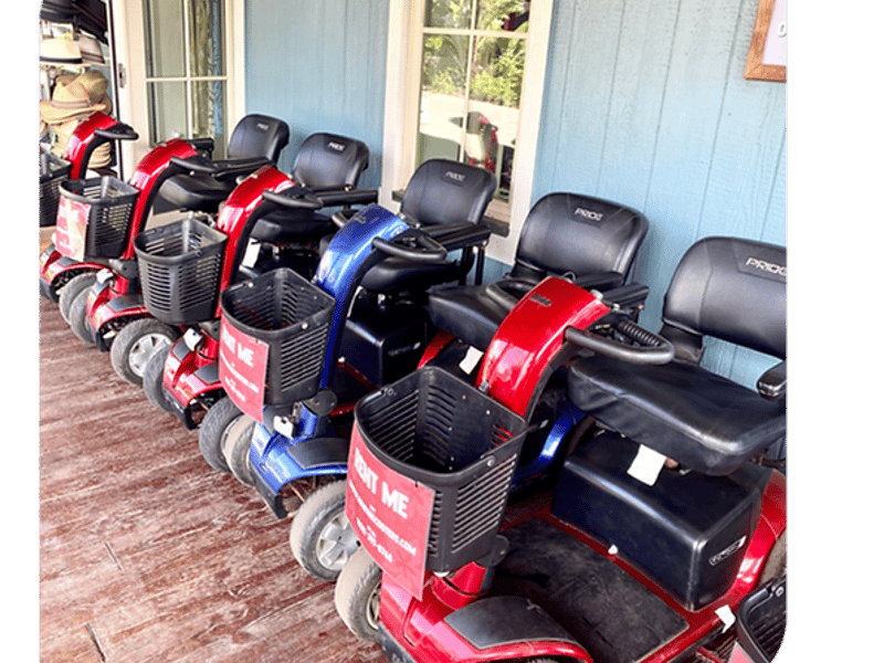 Explore 42 acres in comfort with a full-day mobility scooter rental