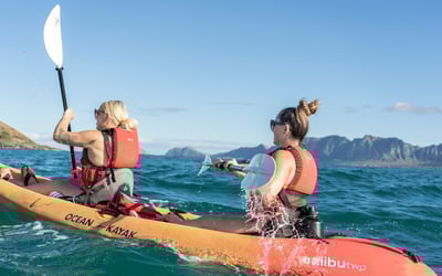 Paddle from Kailua to the Mokulua and Popoia islands for an ocean kayaking and hiking adventure. Enjoy sheltered, reef-lined waters with clear views and vibrant marine life.