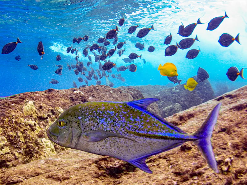 Turtles are more commonly found at Turtle Town rather than inside Molokini Crater; sightings vary by trip.