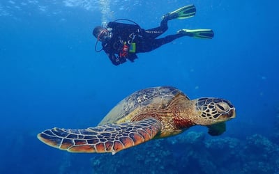 My two-tank private dive with Nick was absolutely incredible! His expertise truly made the day. At the 1st Cathedral, he captured stunning photos of me and the wildlife with the light beams creating a magical effect. The dive at Wash Rock was equally amazing, where he expertly pointed out a shark, a turtle, and rare sea life I would have missed. Nick’s knowledge and experience are exceptional. He prioritized my safety, especially by navigating the potentially dangerous sea swells with skill. He is a fantastic guide—professional, knowledgeable, and passionate. If you want an unforgettable and safe dive seeing Maui's best, book a tour with Nick