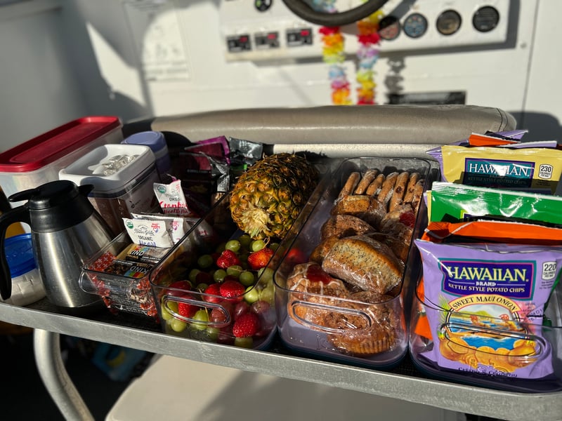 Snacks, beverages, Two dives