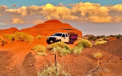 Access exclusive Monument Valley backcountry highlights with Navajo guides in rugged safari vehicles.