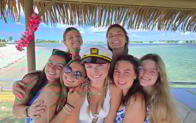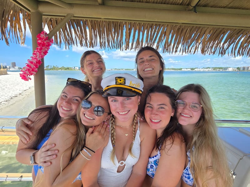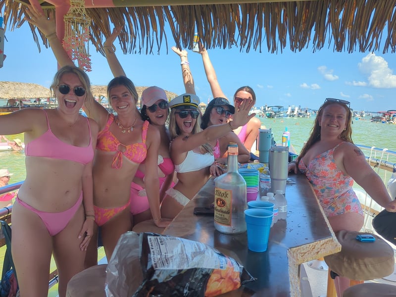 Start your celebration with a private 3-hour morning cruise aboard the Pink Flamingo tiki boat in Pensacola. Bring your own drinks, play your playlist over the Bluetooth speaker, and enjoy open-air seating with barstools and a stern bench.