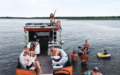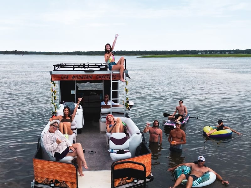 Relax aboard a double-decker Party Hut as you cruise to Bird Island and Barefoot Landing