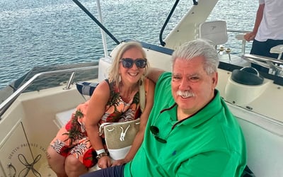 Cruise emerald waters aboard a 45-foot Hatteras with up to 12 guests and play your own music on the Bluetooth sound system