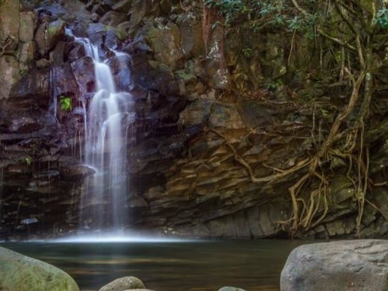 Enjoy an easy rainforest walk to two waterfalls with swim and jump time, ideal for families