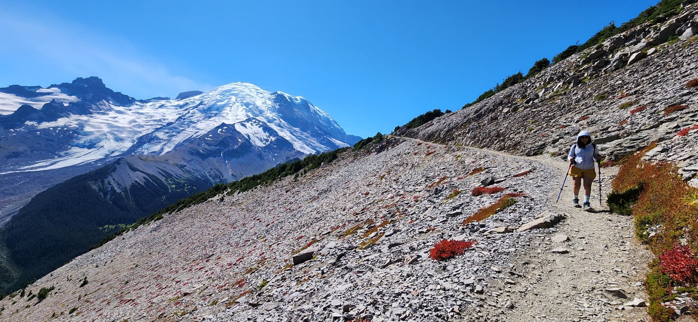 Hike the Three Burroughs trail at Mount Rainier for wildflower meadows, alpine tundra, and big mountain views. Enjoy a full-day outing with transport, a professional guide, and lunch included.