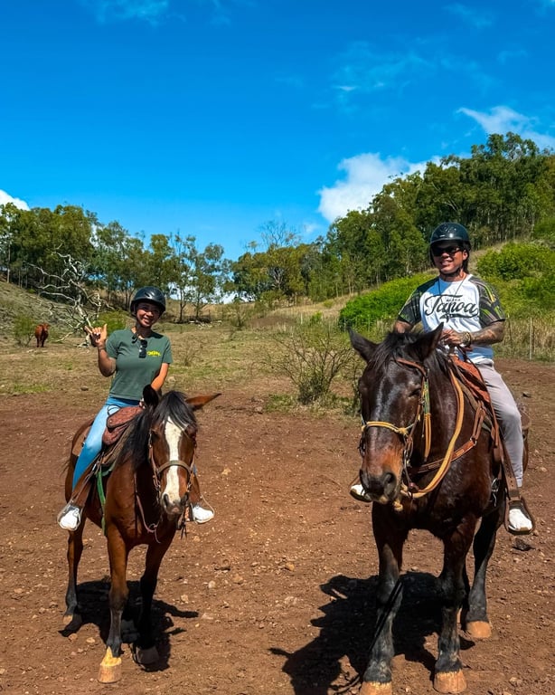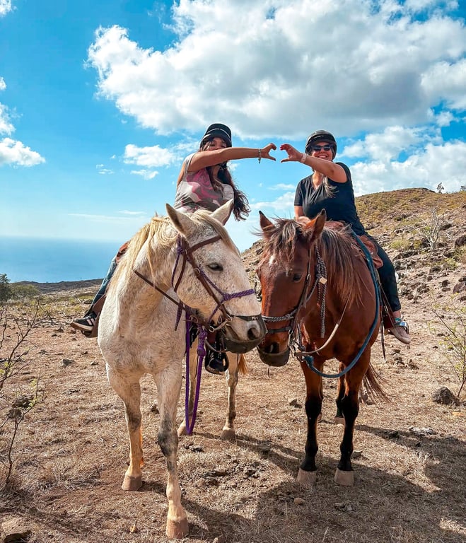 This low-key operation wins hearts with its gentle horses and knowledgeable guides who make everyone feel comfortable, even first-timers. Reviewers consistently praise horses like Ohia, Hawaiian, Lani, and Sky for their sweet temperaments and patience with nervous riders. The guides—including Alyssa, Grace, Madison, and Ciara—get called out for being friendly, safety-conscious, and sharing interesting details about the land and horses. The ride offers beautiful ocean views and shaded forest sections, with sunset rides being especially popular. Expect a simple, relaxed vibe rather than a polished commercial experience. The horses are clearly well-cared for, and there's time after rides to feed and interact with them, which guests love. Getting there involves a dirt road, though regular Ubers manage it fine with advance scheduling. One rider wished there were designated photo stops along the trail, something other operations apparently do. Plan on getting dusty from the red clay terrain, but that seems part of the authentic mountain riding experience that keeps people recommending this spot for both beginners and experienced riders alike.