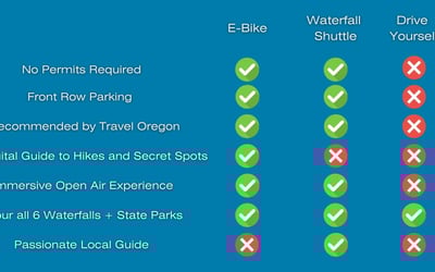 Note: I would NOT recommend this tour to children, elderly people, or anyone who is inexperienced with riding a bike/riding on the road. We found the cars on the road to be VERY aggressive. We stuck as close to the edge of the road as we could (single file) but had multiple cars refuse to pass us (even on straightaways), honk/lay on the horn, give us the 🐦, and in other instances pass with a foot or less between their vehicles and our handlebars. We heard from another group that one person in their group had been too frightened and that person turned back early due to the cars. It's completely out of Ebike Multnomah Falls' control but worth mentioning I think. Now, about the tour itself: The tour is self guided with paper and mobile device maps. The bikes were in great condition and easy to use. Pedal assist makes big hills very manageable. Helmets provided. Bike locks provided. Friendly staff provided clear instructions and gave a great intro to the E-bikes. Route is beautiful and stopping to see the waterfalls along the way was magical ✨✨✨. We took a 3.5hr trip and hit Vista House and all 6 waterfalls. I would highly recommend! If you need snacks + drinks, I recommend bringing a small backpack.