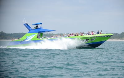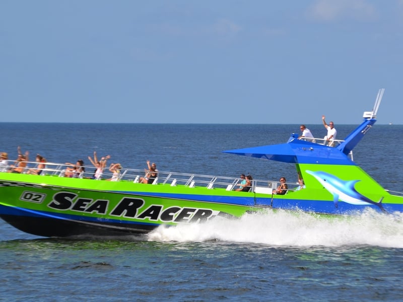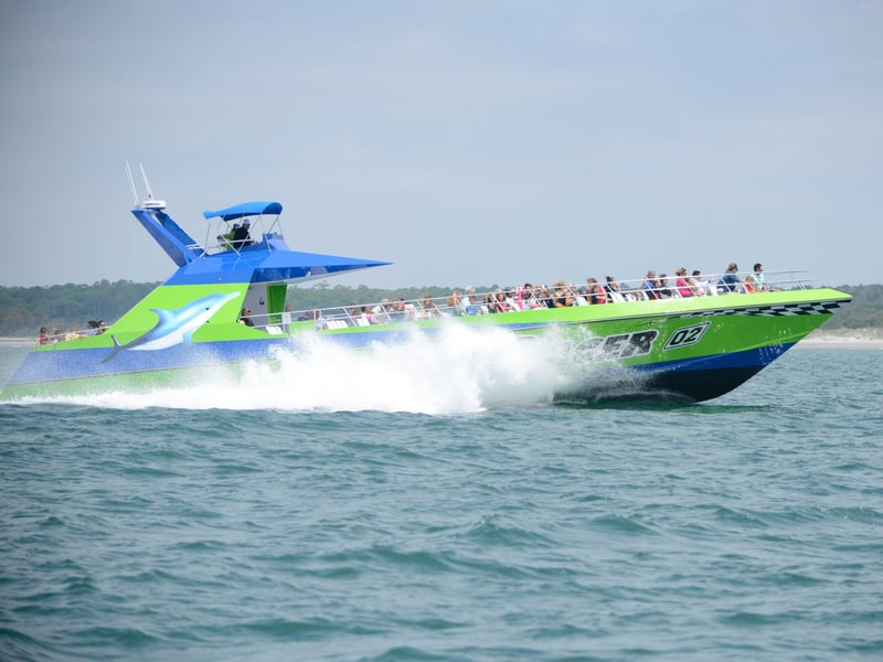 Sea Racer delivers consistently impressive dolphin sightings, with guests regularly reporting encounters with large pods of 50 or more dolphins. Captain Emily, Captain Terry, and deckhand Ireland get enthusiastic shoutouts for being funny, knowledgeable, and genuinely entertaining throughout the tours. Multiple visitors loved the experience so much they went back for a second trip during the same vacation, which speaks volumes about the quality. The boat ride itself is part of the adventure. One thing to note: the intensity of the ride can vary depending on your captain and conditions. Some trips are thrilling and wet, with the boat flying across the water, while others are more relaxed and calm. If you're prone to motion sickness, taking Dramamine beforehand is smart. The crew clearly knows where to find dolphins and shares interesting local history along the way, making this more than just wildlife watching. Families especially seem to love it, with kids asking to go again immediately after.