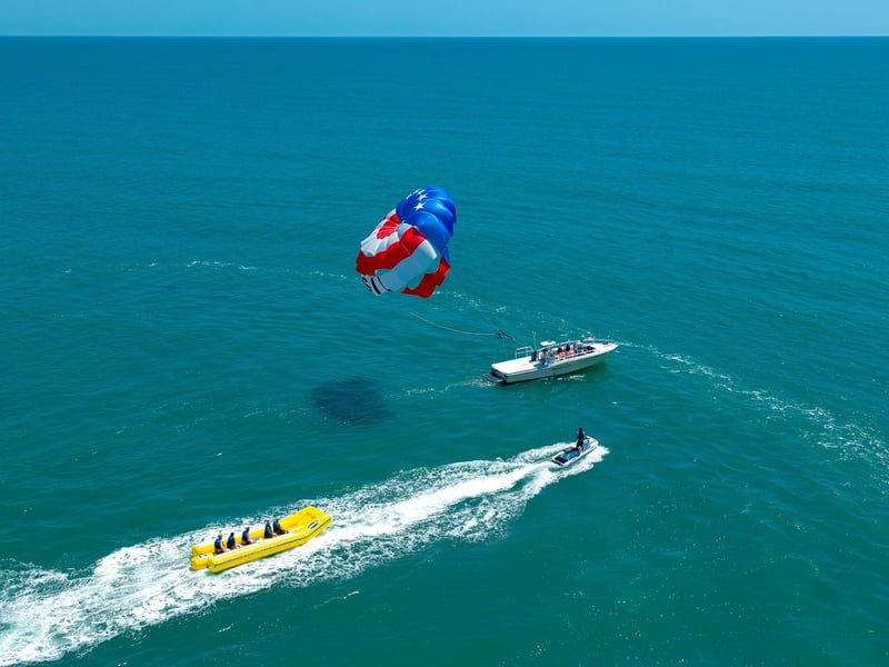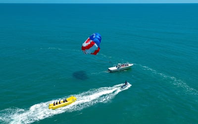 Enjoy a 10-minute parasail flight with banana boat ride and pro crew