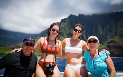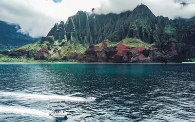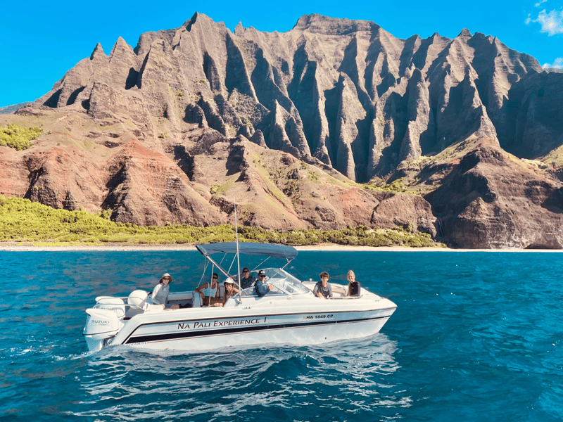 Ride a small-group power catamaran for sea caves and Na Pali scenery in vibrant afternoon light