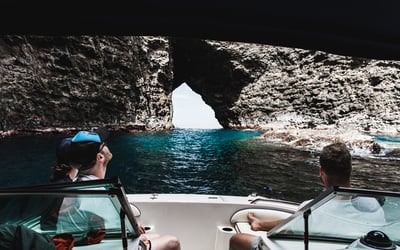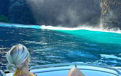 Explore the Na Pali Coast on a 6-passenger power catamaran in the afternoon. Enjoy conversational guiding, dramatic cliffs, and vibrant coastal light, with sea caves when conditions allow.