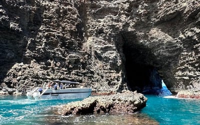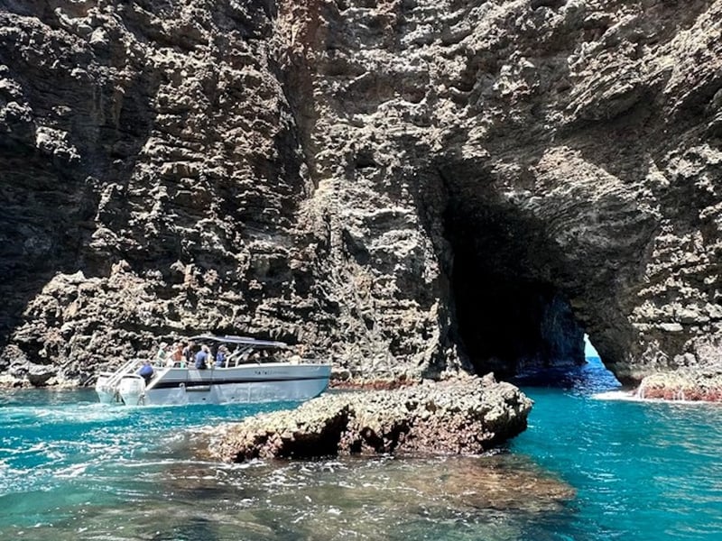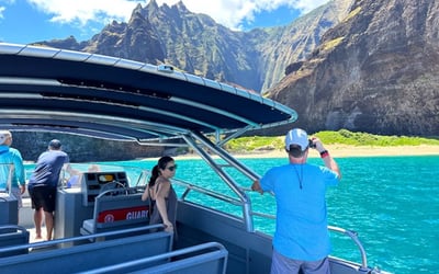 Explore the Na Pali Coast on a custom 35-foot power catamaran built for speed and stability. Enjoy smoother morning seas, sea caves when conditions allow, and chances to see dolphins.