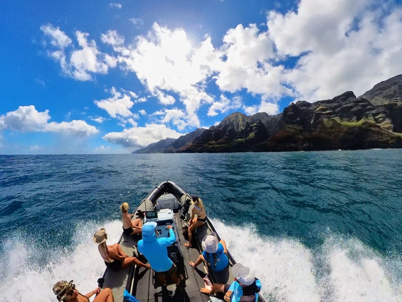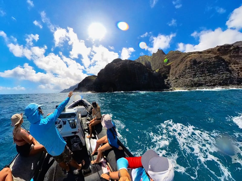 The crew here absolutely makes the experience. Reviewers rave about captains like Justin, Rich, and Nick, plus deck hands including Brett, Shane, Ona, and Keoni. What stands out is how knowledgeable they are about Hawaiian history and the island's stories, turning the boat ride into something more meaningful than just sightseeing. They're skilled at handling the zodiac through caves and waves while keeping everyone safe and entertained, with several people mentioning great music selections and even homemade cookies. The Na Pali Coast views are consistently described as jaw-dropping, and the smaller boat size lets you access sea caves and hidden spots larger vessels can't reach. Wildlife sightings are frequent, with dolphins, sea turtles, and monk seals making regular appearances. The snorkeling gets enthusiastic mentions, and the included lunch hits the spot. Fair warning: this is a physical ride with bumpy waves that isn't ideal for anyone with joint issues or seasickness. One reviewer had their tour cancelled on short notice due to low bookings, which was frustrating timing. Overall though, people walk away calling this the highlight of their Kauai trip.