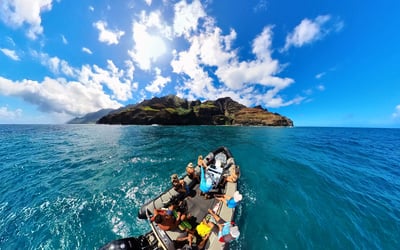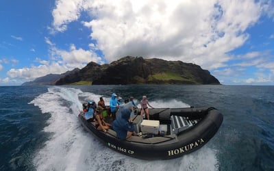 Explore sea caves and vibrant reefs along Kauai's Na Pali Coast with expert guides on a small, swift zodiac.