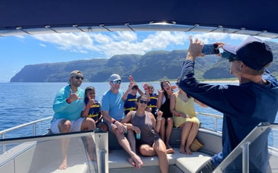 Explore Kauai’s Na Pali Coast on a morning power catamaran tour designed for comfort and agility. Enjoy smoother seas, sweeping open-bow views, and chances to spot dolphins, with snorkeling possible if conditions allow.