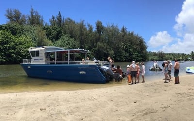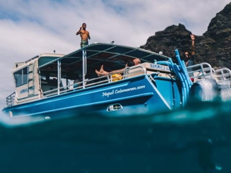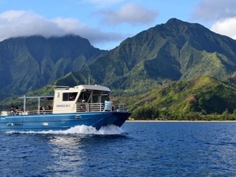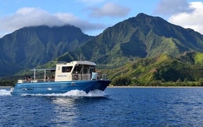 Get early access to the Nā Pali Coast with snorkeling, wildlife viewing, and lunch on a 4-hour Hanalei Bay catamaran
