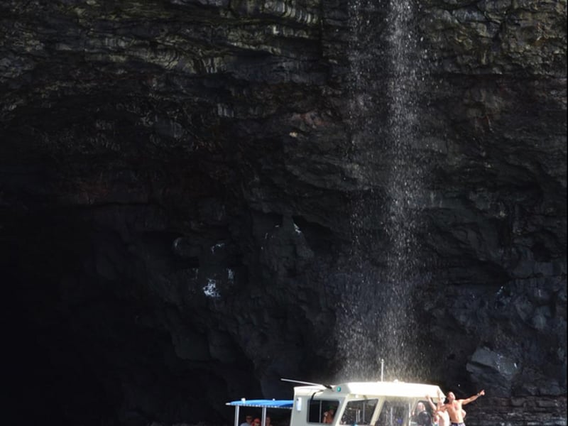 Your crew shares history as you visit sea caves, cliffs, beaches, and valleys, pausing for photo opportunities along the way.