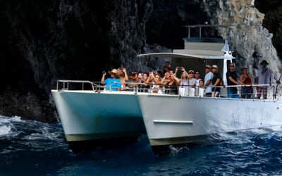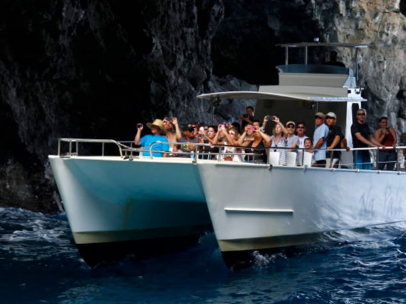 Cruise the Na Pali Coast aboard a 49 ft catamaran and take in towering cliffs and sea caves. Snorkel in warm, clear water with provided gear and enjoy lunch and drinks.