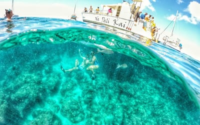 Snorkel the Na Pali Coast in 4.5–5 hours with lunch, ages 4+, shared or private charter