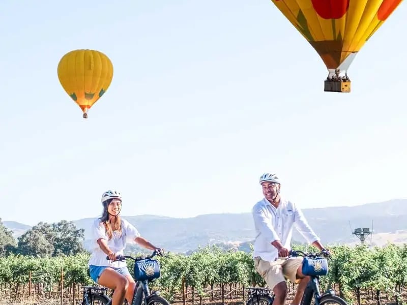 Combine a scenic hot-air balloon flight with a guided e-bike winery tour in Napa Valley. Ride at a casual pace, visit one winery, and keep your e-bike to explore after the tour.