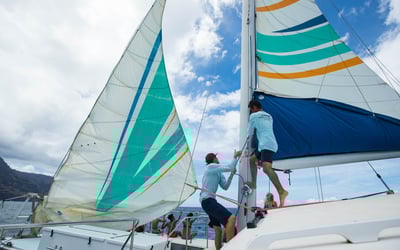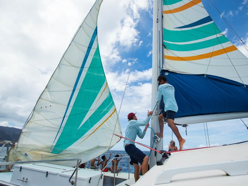 Feel the trade winds as you sail Kauai's dramatic Napali Coast aboard a 50' catamaran, then dive in for a guided snorkel in clear Pacific water.