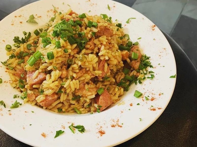 A: The set menu features shrimp, chicken, and andouille sausage. For substitutions or allergy concerns, please contact the vendor before booking.