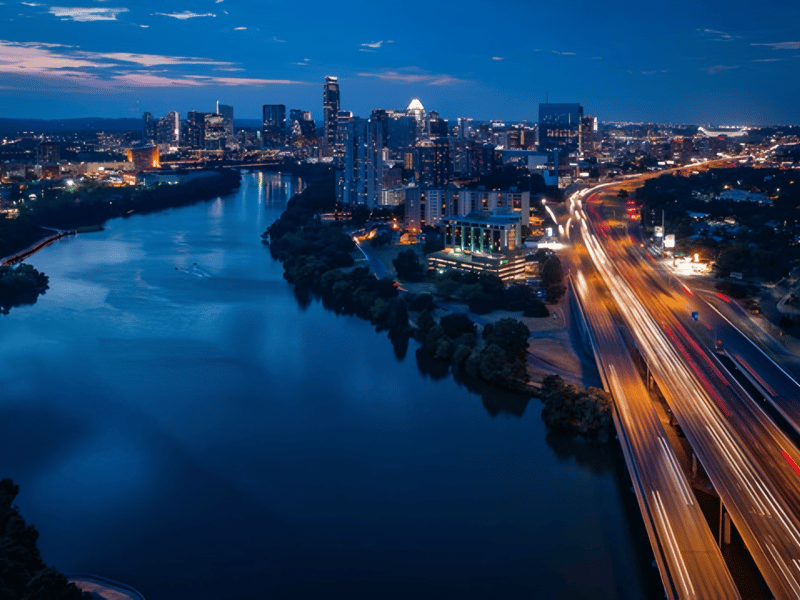 Soar over Austin's illuminated skyline and Lake Austin for breathtaking night views