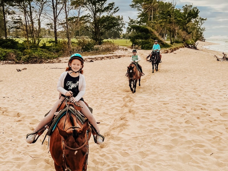 Ride gentle polo ponies along a scenic North Shore oceanfront trail.