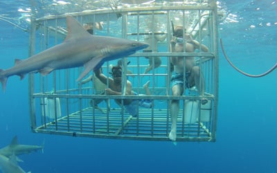 All ages are welcome and non-swimmers can hold on to handrails inside the cage. Tours run year-round; please arrive 30 minutes before departure.