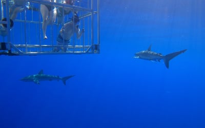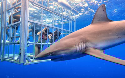 Experience the thrill of observing Hawaiian sharks up close from a secure floating cage three miles off Haleiwa. Cruise in a custom aluminum boat, hear engaging shark lore, and enjoy crystal-clear water with visibility up to 150 feet.