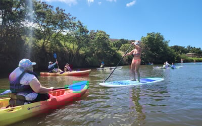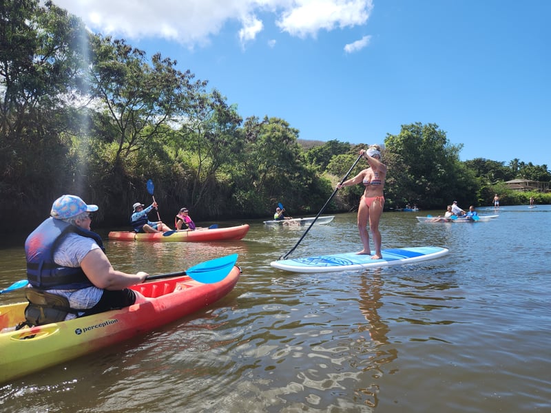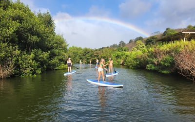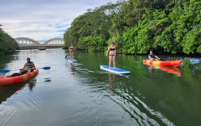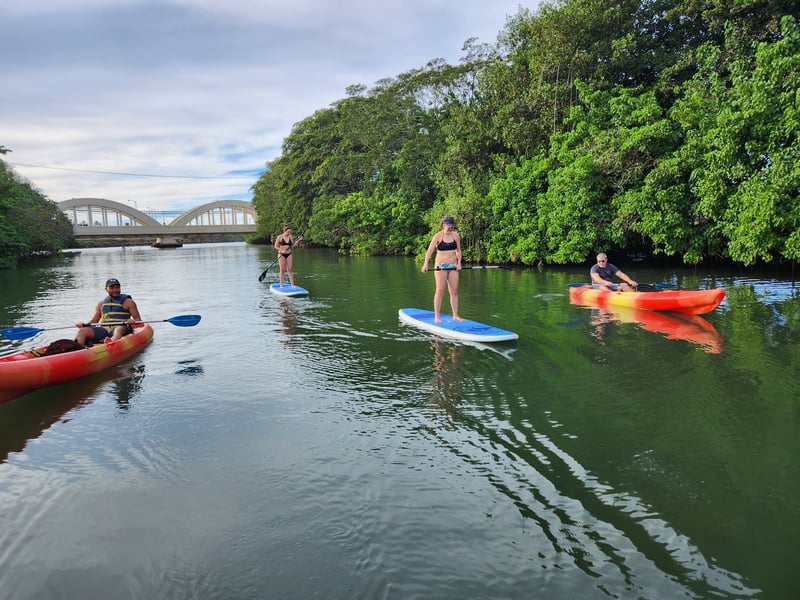 The guides here—especially Steve, JC, and AJ—clearly know how to make people feel comfortable on the water, whether you're a complete beginner or looking to improve your skills. Reviewers consistently mention how patient and encouraging the instructors are, with several first-timers successfully standing on surfboards or paddleboards thanks to solid teaching and a relaxed vibe. The personal touches really stand out: guides regularly take photos and share them afterward, which visitors appreciate. The Anahulu River tours are the main draw, with multiple activities available including paddleboarding, kayaking, surfing lessons, and outrigger canoe trips. Turtle sightings are practically guaranteed, and some lucky groups have spotted manta rays too. The operation feels well-organized with smooth rentals and well-maintained equipment. Families particularly love how adaptable the guides are—they'll pair up with kids in kayaks or take extra time with grandparents to ensure everyone has a great experience. It's clearly become a repeat favorite for visitors returning to Oahu.