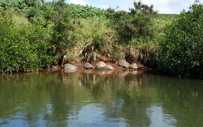 Spot Hawaiian green sea turtles while paddling the tranquil Anahulu River