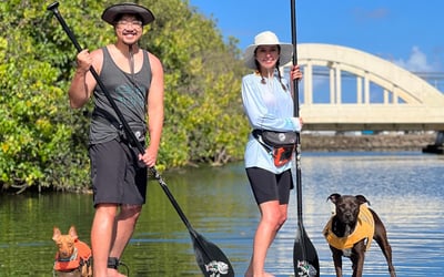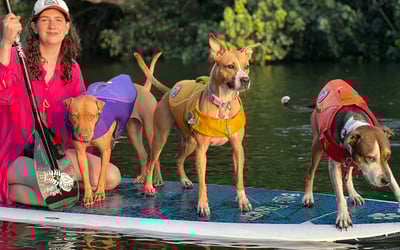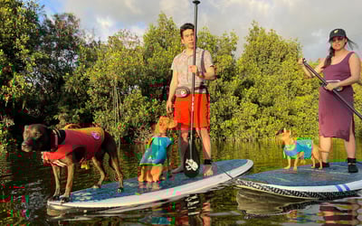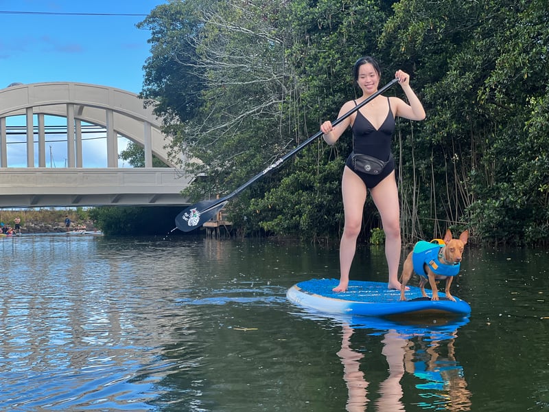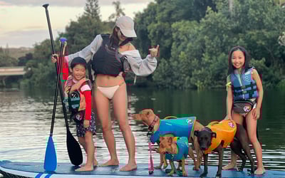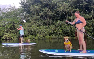 Tyler and his team of rescue dogs have created something truly special on Oahu's calm rivers. First-time paddleboarders consistently praise how welcoming and beginner-friendly the experience is, with Tyler's instruction making everyone feel confident on the water. The real stars, though, are the rescue pups—Sandy, Dobby, Phoenix, Poke, and the rest of the crew—who paddle along, jump between boards, and generally steal everyone's hearts. Each dog has their own rescue story that Tyler shares during the tour. What makes this experience stand out is how it combines paddleboarding with local history lessons, stunning sunsets, and the chance to spot sea turtles in the river. Multiple honeymooners and vacationers call it the highlight of their entire Hawaii trip, even beating out traditional activities like snorkeling and ziplining. The calm river location (mentioned as perfect for learning) and Tyler's positive energy create a relaxed, joyful atmosphere. Many guests book multiple sessions during their stay, and some even report it inspired them to get paddle boards for their own dogs back home. It's clearly a unique way to enjoy Hawaii's natural beauty while supporting a great cause.