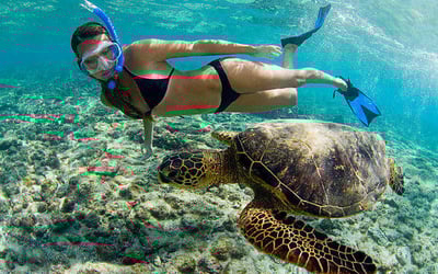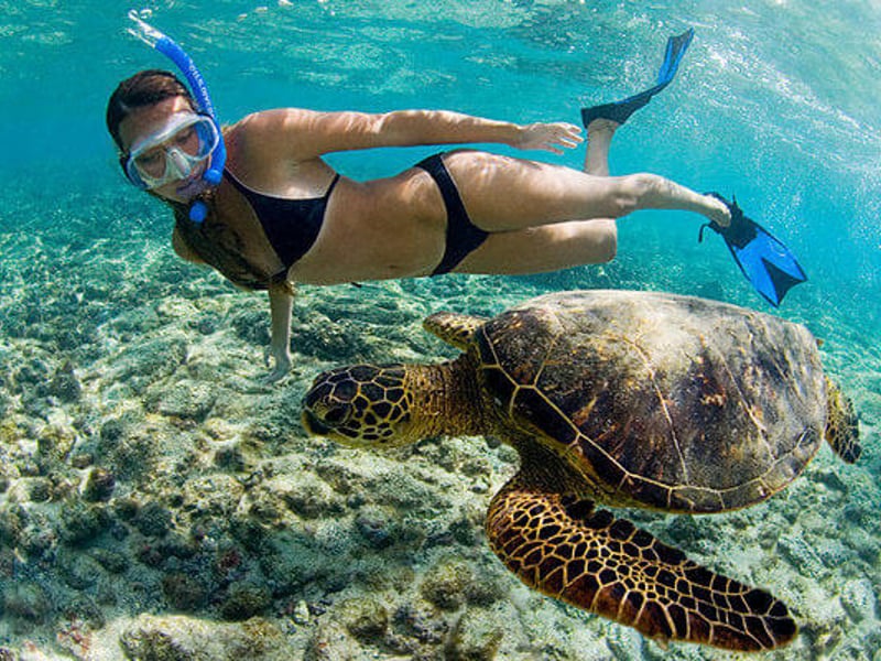 Join a boat snorkeling tour off Oahu to see turtles, dolphins, fish, and seasonal whales. Snorkel gear, light snacks, and water are included.