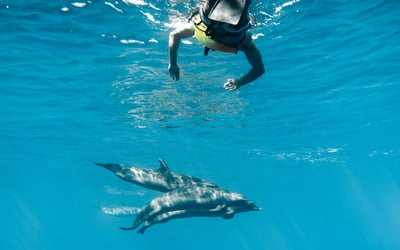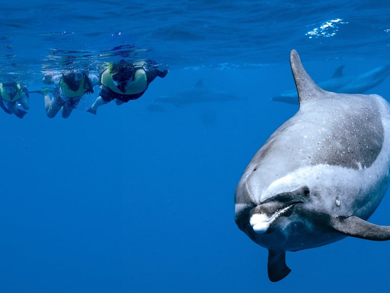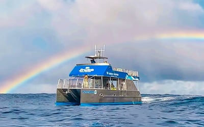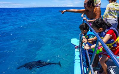 Cruise along Oahu's Waianae coastline on a spacious catamaran to swim with wild dolphins and snorkel vibrant reefs. Enjoy onboard water fun, lunch, and all necessary gear for an easy family adventure.