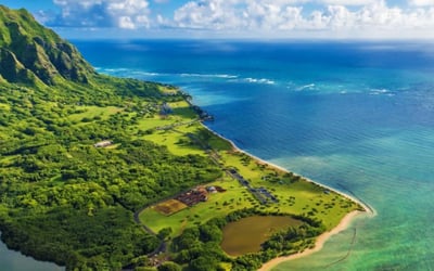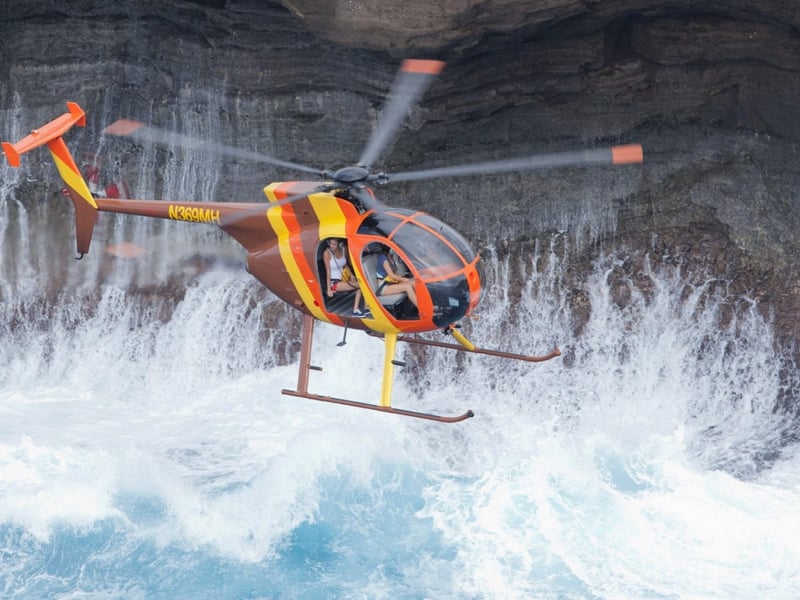 Experience Oahu from above on a 50-minute doors-off helicopter tour. See Honolulu Harbor, Waikiki Beach, the Koolau mountains, Kaawa Valley, Sacred Falls, the North Shore, and Pearl Harbor.